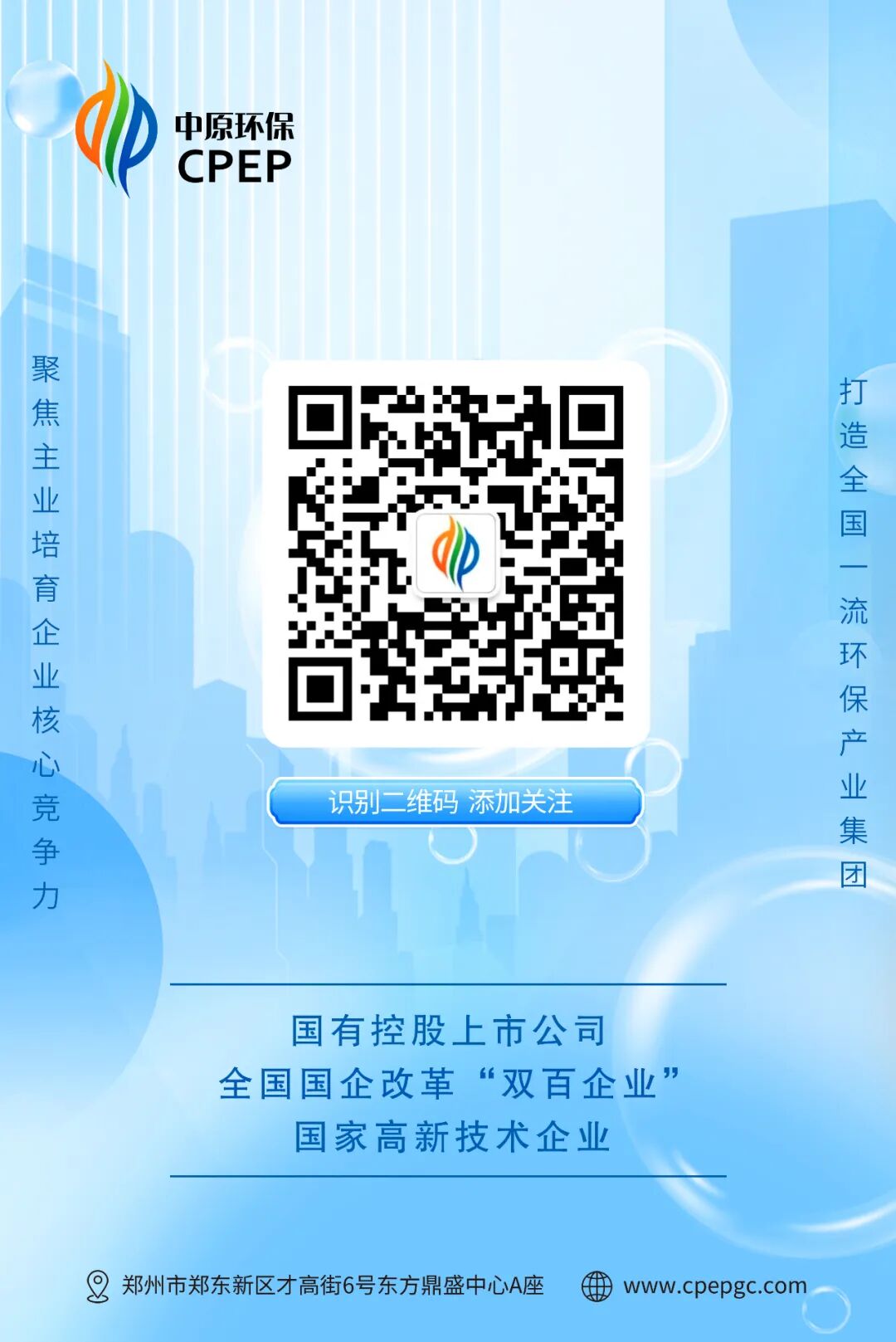 作为国家高新技术企业,国有控股上市公司和全国国企改革“双百企业”,近年来,中原环保抢抓黄河国家战略、“双碳”战略等重大机遇,聚焦郑州国家中心城市现代化建设大局,以打造全国一流环保产业集团为核心目标,坚持创新驱动、技术引领,深耕污水处理、污泥处理、再生水利用等重点领域,打造了以活性焦吸附、污泥热解气化、污泥废气处理等一系列全国领先技术为代表的核心竞争力,立足郑州、深耕中原、布局全国,荣获“国家优质工程奖”“国家科技进步二等奖”等数百项荣誉。