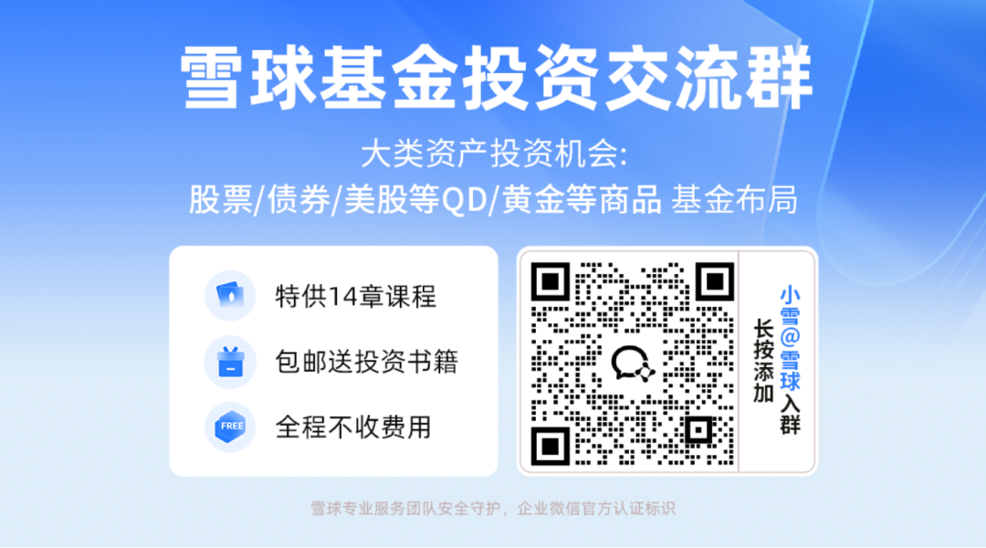 14章核心课程,聚焦大类资产投资方法论,通过基金布局A股/港股/美股/债券/商品等机会;入群即可获得1本投资好书,更有投资情报、基金内参、精选好品等群独享一手信息……来,把握行情,与天南海北的投资朋友畅聊机会吧!