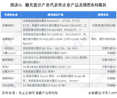 从我国激光雷达代表性企业产品架构情况来看,截至2023年5月,禾赛科技、速腾聚创等企业产品较多,销售布局较为广泛。