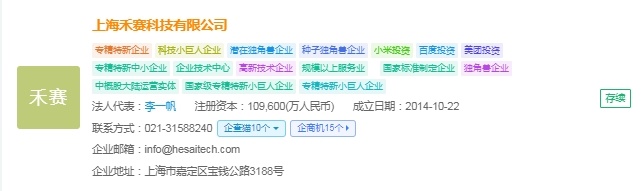 上海禾赛科技有限公司(简称:禾赛科技)是一家全球化的激光雷达研发与制造企业。企查猫资料显示,该公司成立于2014年,总部位于上海,由三位在硅谷有着丰富经验的精英创立,现任CEO为李一帆,首席科学家为孙恺,CTO为向少卿。