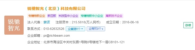 锐驰智光(北京)科技有限公司(简称:锐驰智光)成立于2016年,注册资金为215.5818(万人民币),位于北京市,是一家致力于激光传感器制造和解决方案的高新技术企业。锐驰智光以强大的持续创新能力为驱动,研发精确、高效、智能的激光传感器技术,为人工智能的广泛应用提供良好的感知能力和数据支持。公司在自动驾驶及智能交通领域有着重要的应用,特别是在自动驾驶汽车的环境感知方面,锐驰智光提出了芯片化激光雷达的方案,并开发了世界首款激光雷达集成芯片,为自动驾驶汽车提供先进的感知技术。