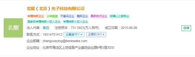 北醒(北京)光子科技有限公司(简称:北醒光子)成立于2015年,法人代表是李远,注册资金为731.3923(万人民币),是一家专注于激光雷达及其解决方案的高新技术企业。