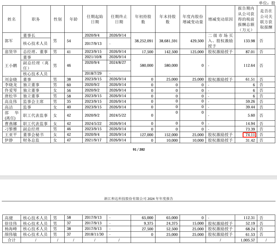 董事会秘书王亚平2024年薪酬为74.11万元,2023年薪酬为66.5万元,涨薪7.61万元。2022年薪酬为62.64万元。