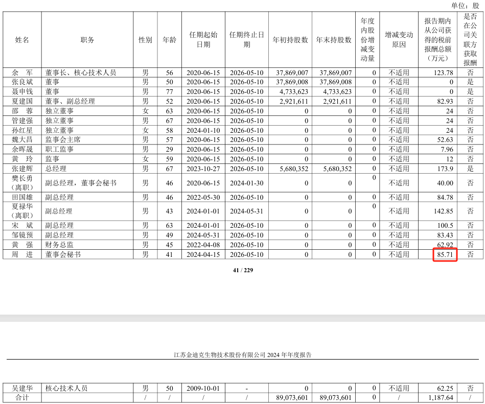 董事会秘书周进2024年薪酬为85.71万元,任职起始日期为2024年4月15日。