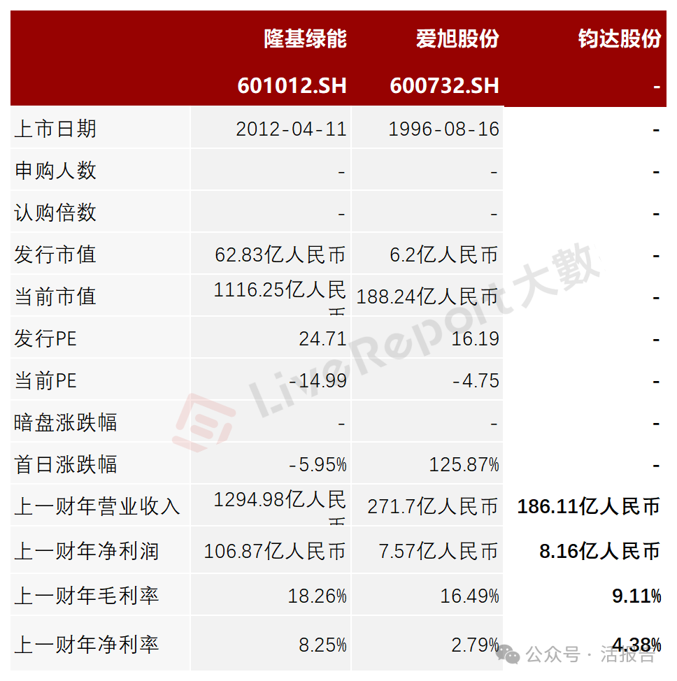 本次选取的同行业对比公司为:隆基绿能(601012.SH)、爱旭股份(600732.SH)