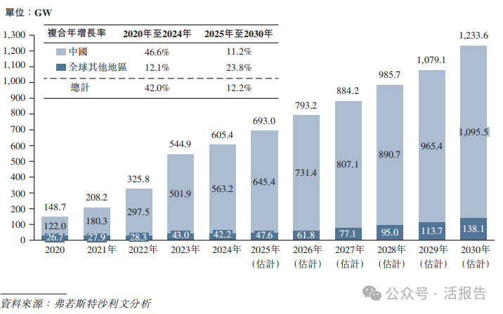 根据弗若斯特沙利文的资料,2024年,全球光伏电池市场规模按出货量计已达605.4 GW。全球对以太阳能为主要代表的可再生能源的需求持续稳步增长。此外,随着技术进步和成本降低,太阳能已成为越来越多国家最具竞争力的能源。因此,预计全球光伏市场将持续保持快速增长,预计持续推动光伏电池市场的扩张。预计到2030年,全球光伏电池的出货量将达到1,233.6 GW,2025年至2030年的复合年增长率为12.2%。