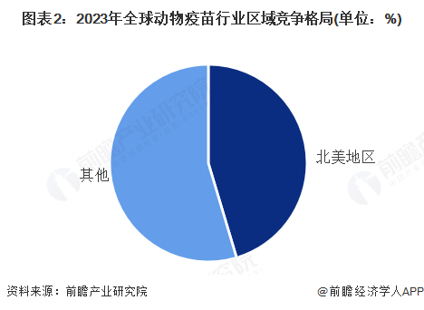从全球动物疫苗的区域市场竞争格局来看,2023年北美地区(含美国、加拿大)是全球最大的动物疫苗区域市场,占比达到约45 %。