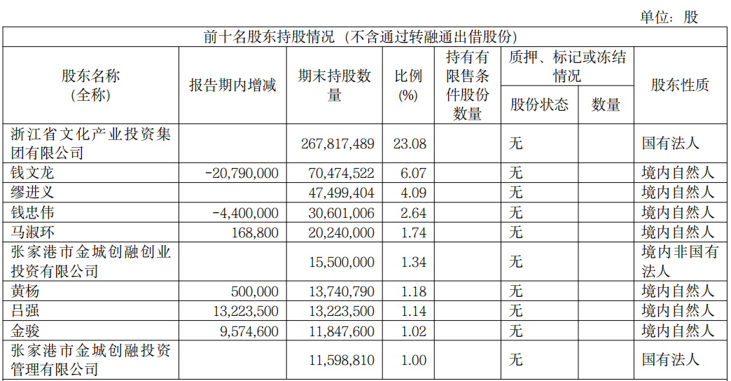 2020年7月10日,浙江省文化产业投资集团有限公司(简称“浙江文投”)通过与浙文影业前身鹿港文化签署《投资框架协议》和《股份认购协议》,并与公司实际控制人钱文龙及主要股东缪进义签署《表决权委托协议》的方式取得浙文影业的控制权,公司控股股东由钱文龙变更为浙江文投,实际控制人由钱文龙变更为浙江省财政厅。