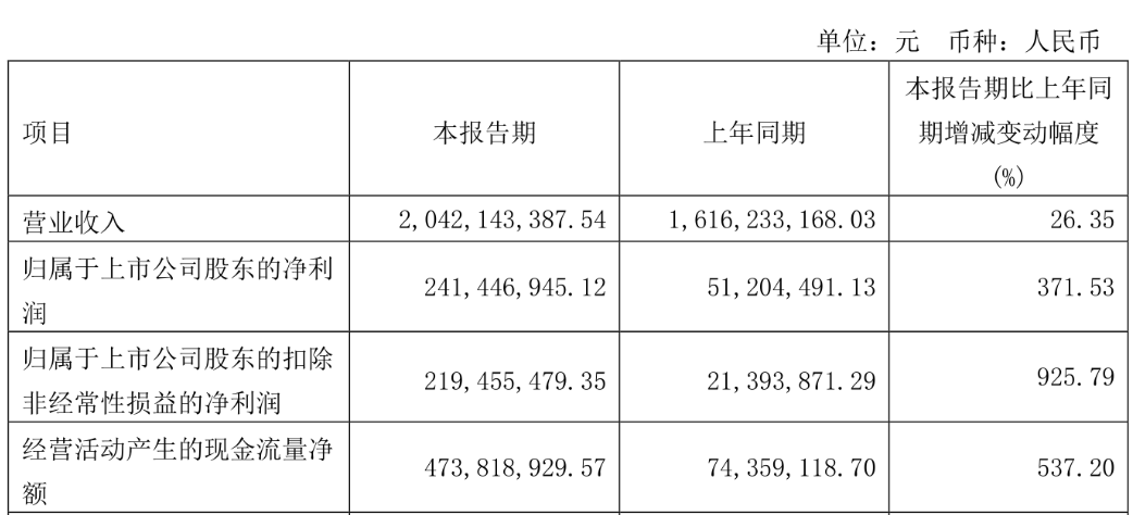2025年第一季度,安通控股实现营业收入20.42亿元,同比增长26.35%;归属于上市公司股东的净利润2.41亿元,同比增长371.53%;归属于上市公司股东的扣非净利润2.19亿元,同比增长925.79%;经营活动产生的现金流量净额为4.74亿元,同比增长537.20%。