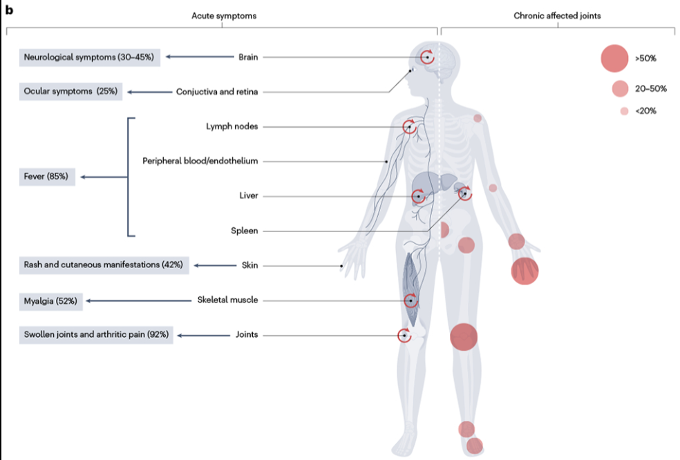[2]Bartholomeeusen, K., Daniel, M., LaBeaud, D.A. et al. Chikungunya fever. Nat Rev Dis Primers 9, 17 (2023).