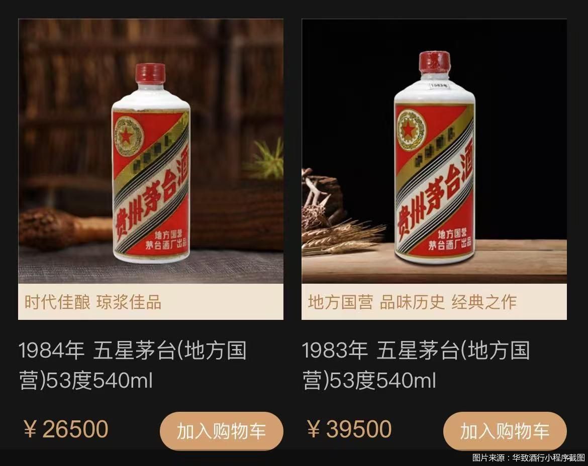 据悉,五星商标源于1954年5月1日茅台首次启用的“金轮牌”商标。北京商报记者登录华致酒行小程序查询发现,五星茅台老酒在二级市场随着年份提升价格也向上浮动。其中,53度540ml 1983年五星茅台(地方国营)产品成交价为3.95万元;53度540ml 1984年五星茅台(地方国营)产品成交价为2.65万元。