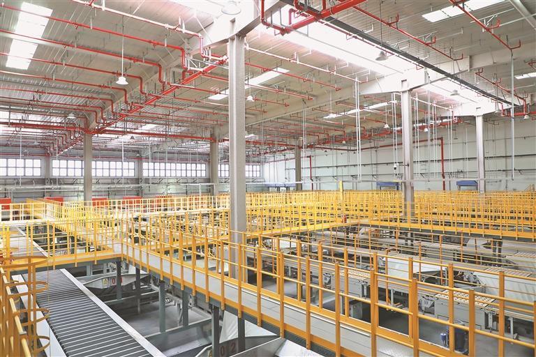 “只要包裹标签没压在最下面,DWS系统即可对包裹进行扫描、称重和条码识别,扫描后的包裹送至窄带分拣机,每件包裹只需1.8秒即精准弹入对应格口,每小时能分拣2200件,准确率99%。”经理龚立鹏指着分拣线赞不绝口。