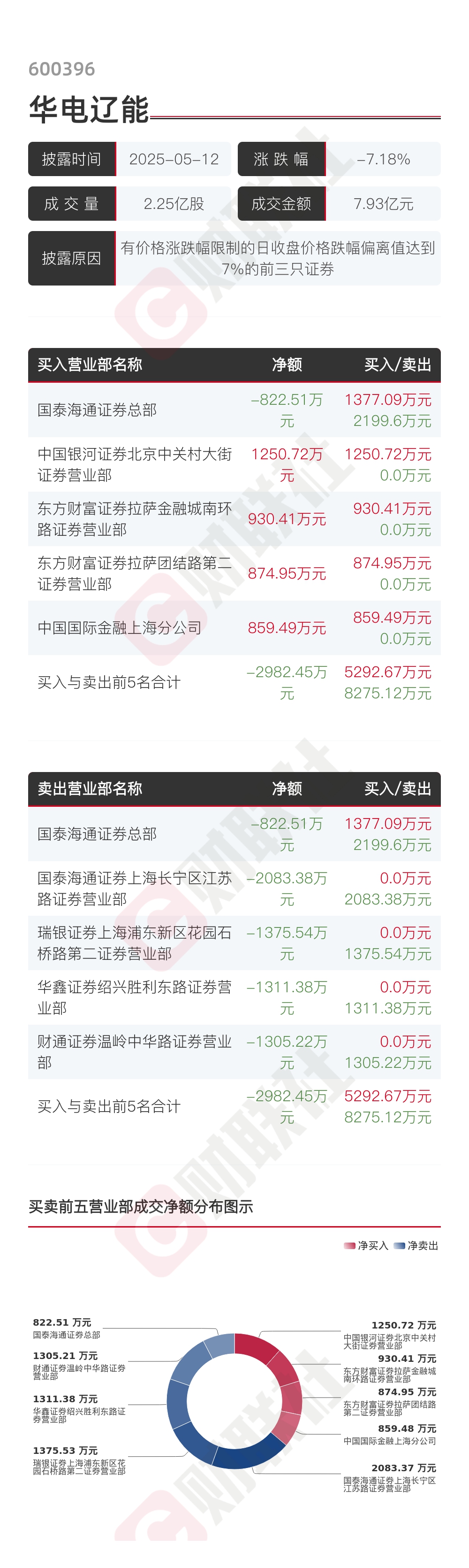 【龙虎榜】华电辽能 5月12日成交明细