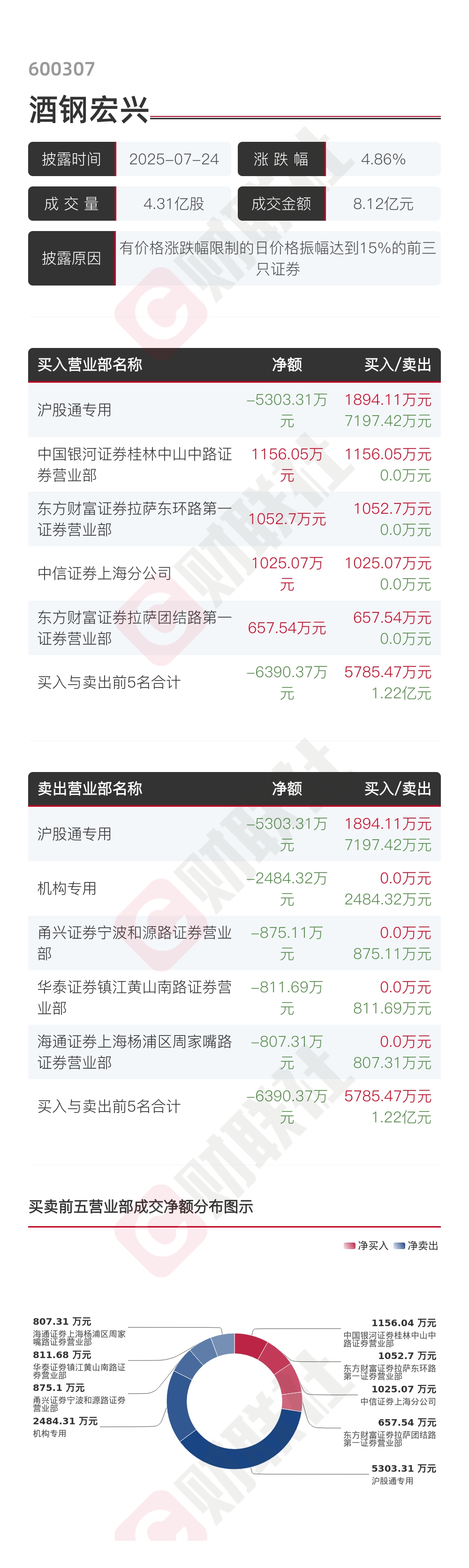 【龙虎榜】酒钢宏兴 7月24日成交明细