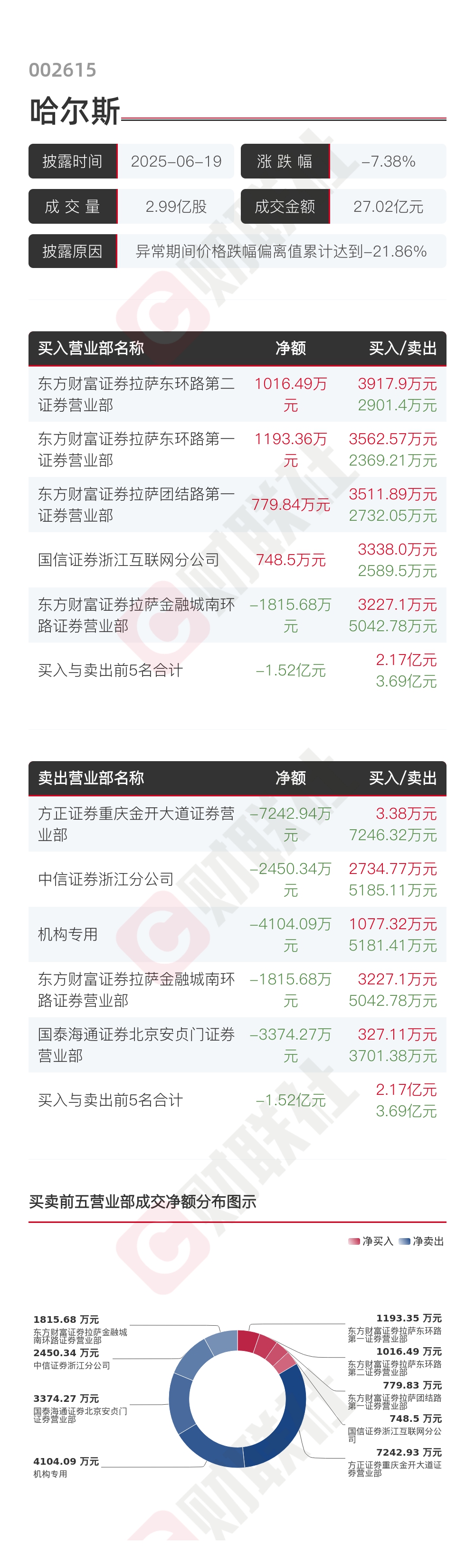 【龙虎榜】哈尔斯 6月19日成交明细