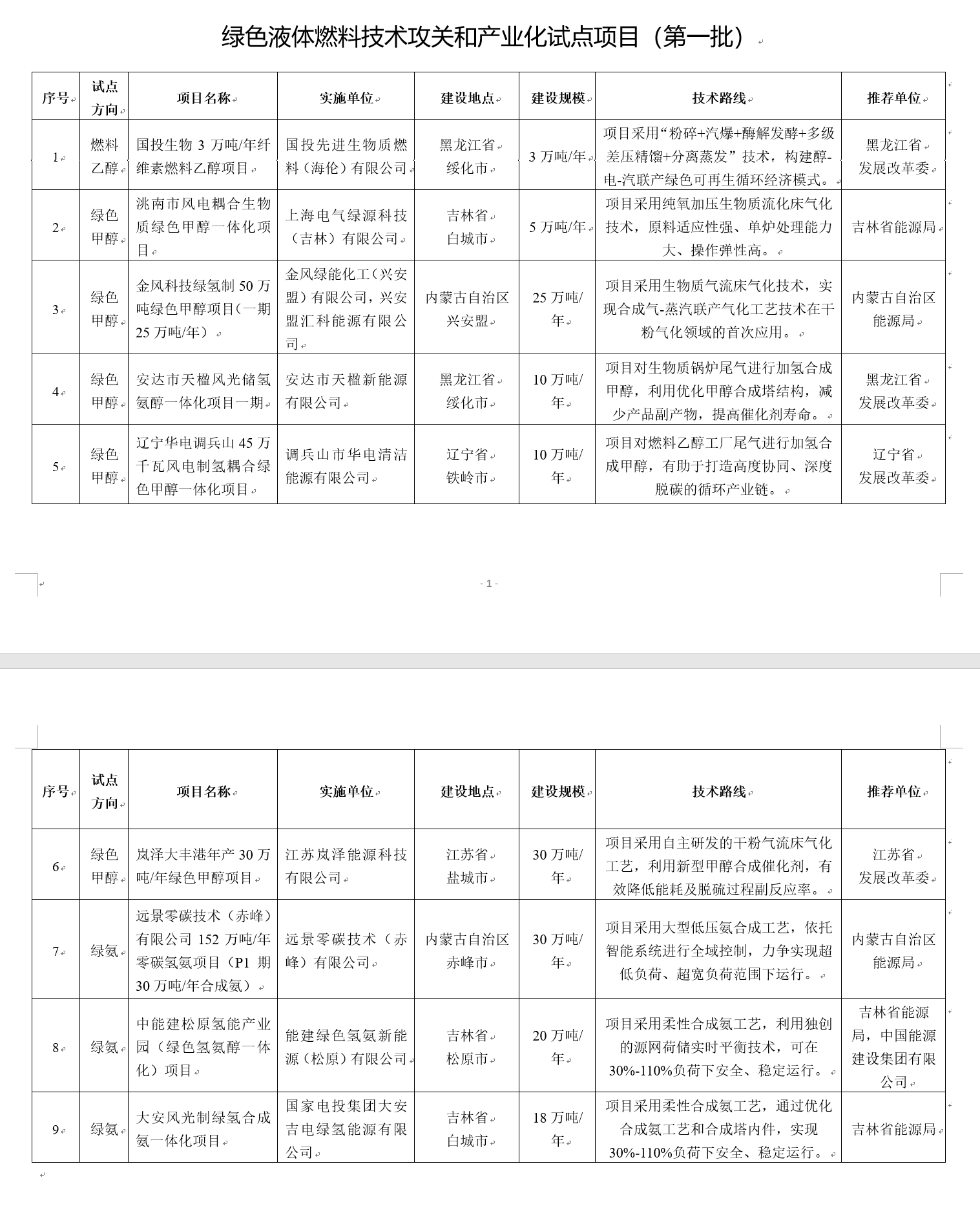 【国家能源局:开展绿色液体燃料技术攻关和产业化试点工作(第一批)】