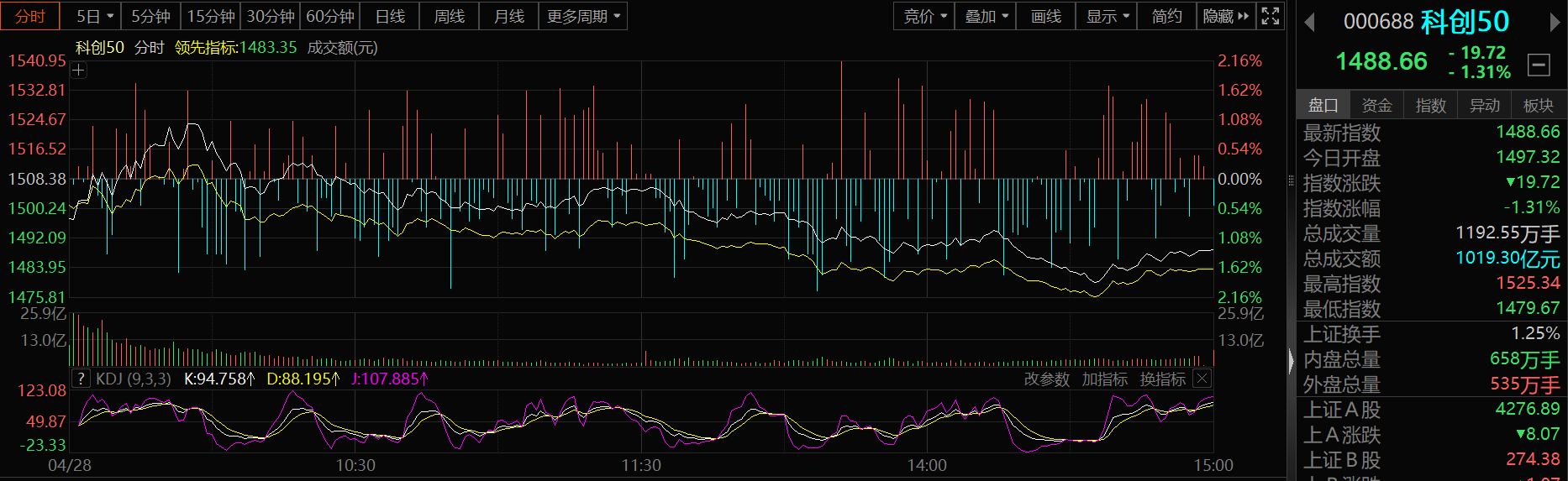 【科创板收评:科创50指数收跌1.28% AI硬件方向陷入调整】