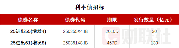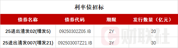 财联社1月28日电,按照此前公布的发行计划,进出口银行将于09:30-10:10招标发行两期金融债:中国进出口银行2025年在上海清算所第二期金融债券(第五次增发),期限2Y,发行量不超过20亿元,票面利率1.26%;中国进出口银行2025年在上海清算所第一期浮动利率金融债券(以DR007为基准)(第二十一次增发),期限3Y,发行量不超过30亿元,票面利率1.41%。