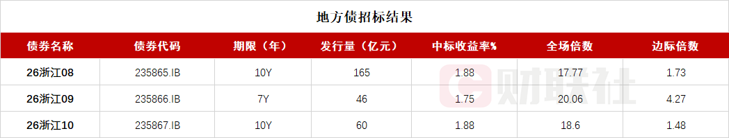 【浙江省政府三期地方债已招标结束 投标倍数均在17倍之上】