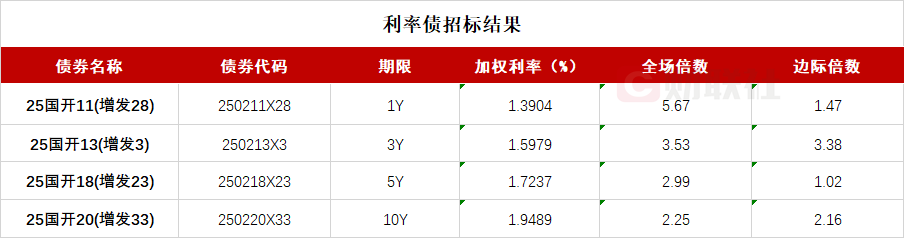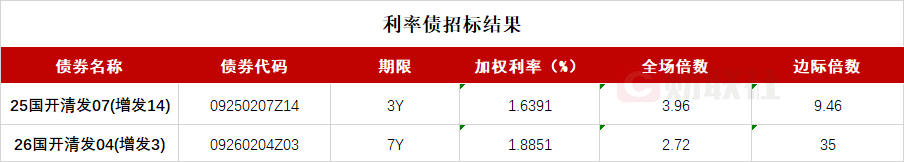 【国开行两期金融债已结束招标 3年期品种中标收益率1.6391%】