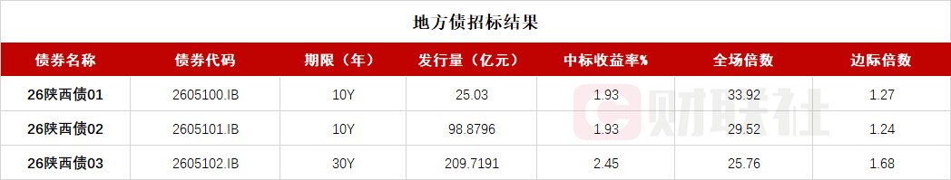 【陕西省政府三期地方债已招标结束 投标倍数均在25倍之上】