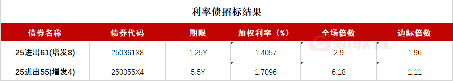 【新债招标|中国进出口银行2025年第十三期金融债券(第九次增发)已招标结束 中标收益率1.6099%】