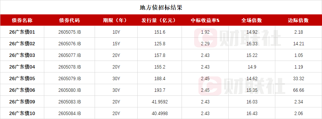 【广东省政府十期地方债已招标结束 投标倍数均在14倍之上】