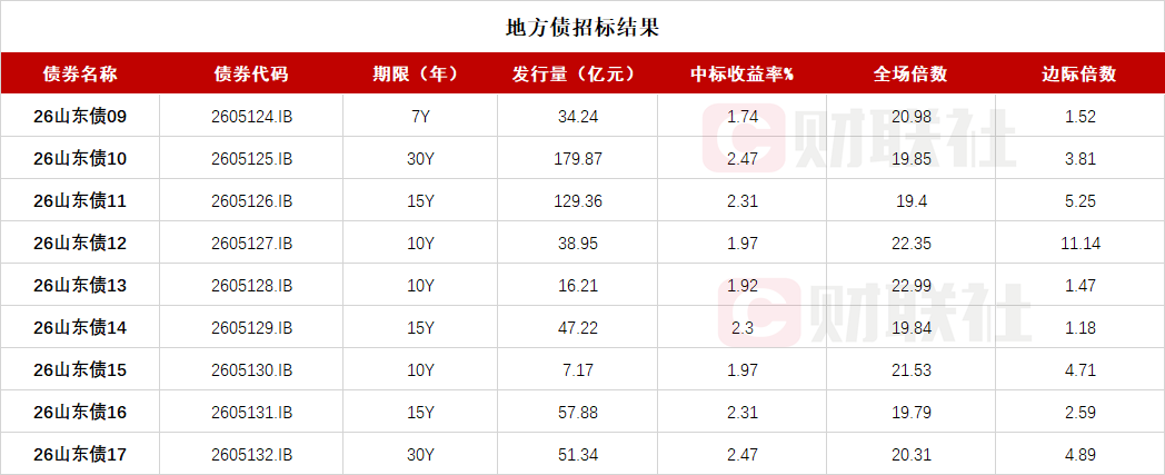 【山东省政府九期地方债已招标结束 投标倍数均在19倍之上】
